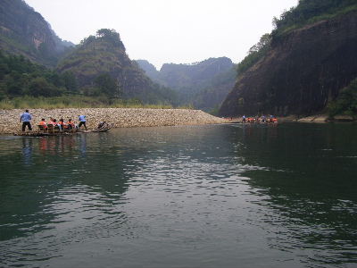 Da es hier aber alles schön der Reihe nach geht, berichte ich zunächst von meinem Betriebsausflug mit arvato (welcher hier den wunderbaren Namen „Outing“ trägt), der am Wochenende zwei Wochen davor stattgefunden hat. Dazu sind wir alle zusammen nach Wuyishan geflogen, einem kleinen Ort mitten in der chinesischen Provinz, etwa 45 Flugminuten von Shanghai entfernt. Ein erstes Erlebnis war schon die Landung auf dem „Wuyishan International Airport“, der eigentlich nur aus einem geteerten Platz und einer kleinen Ladenpassage besteht. Es muss allerdings fairerweise dazu gesagt werden, dass hier täglich nur etwa 5 Maschinen landen. Auf jeden Fall war ich schon etwas verwirrt, als ich aus dem Flugzeug ausgestiegen bin, mitten auf dem Rollfeld stand und weit und breit kein Bus in Sicht war. Aber der „Schock“ war schnell überwunden, da man das sinnvolle und hilfreiche Hinweisschild mit der Aufschrift „Domestic Arrivals“ auch zu Fuß in einer Minute erreicht hat (was unbedingt noch einmal betont werden muss, es wäre schließlich tragisch, wenn man einen internationalen Flug hat und zum falschen Ausgang geht...). Im Hotel erlebte ich dann die positive Überraschung, dass außer mir noch zwei andere Deutsche mit dabei waren, die ich nur noch nicht kannte, da einer von ihnen in Shenzhen arbeitet und der andere im anderen Bertelsmann-Büro in Shanghai. An dieser Stelle noch mal tausend Dank an Euch beide, Raoul und Thierry, ohne Euch wäre ich mit meinen, na ja, nennen wir es mal rudimentären Chinesisch-Kenntnissen wirklich eingegangen.