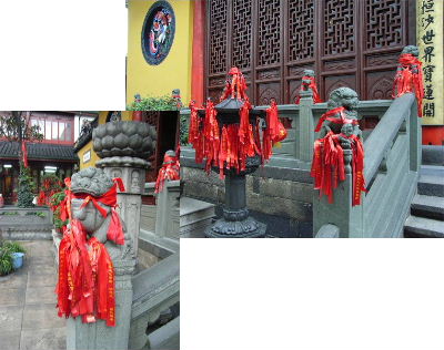 Das Wochenende davor war das Wetter leider nicht so gut, so dass ich mir einige Alternativen überlegen musste. Aus diesem Grund habe ich mich dazu entschlossen, mir einige Tempel anzuschauen. Besonders beeindruckt hat mich der Jadebuddha-Tempel, in welchem man sich eine etwa 2m große Buddhastatue anschauen kann, die aus einem einzigen Jadeblock gearbeitet wurde. Zur Herrschaftszeit Maos wurden alle religiösen Reliquien vernichtet, es ist aber einigen Mönchen gelungen, dieses beeindruckende Werk zu verstecken. Im eigentlichen Tempel und davor tummeln sich die Gläubigen, zünden Räucherstäbchen an und beten zu verschiedenen Göttern. Außerdem kann man die roten Glücksbänder, welche auf dem Foto zu sehen sind, kaufen und sich etwas wünschen, wenn man diese am Tempel befestigt. Dort herrscht eine ganz tolle, friedlich Atmosphäre, die man nicht beschreiben kann, sondern selber einmal miterlebt haben muss.