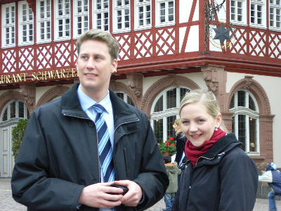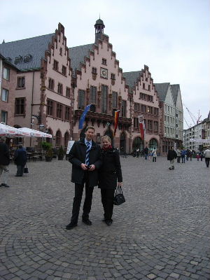 Am nächsten Tag ging es dann um elf Uhr Richtung Römer, in welchem sich in Frankfurt das Standesamt befindet. Es ist wirklich eine wunderschöne Kulisse, um zu heiraten. Es wäre vielleicht noch schöner gewesen, wenn nicht jemand für das Brautpaar direkt vor meinem Bruder und seiner Frau auf einem Jagdhorn fürchterlich falsch „Die Sau ist Tod“ gespielt hätte, aber lassen wir das, es hatte bestimmt seinen Hintergrund. Im Laufe des Tages sind dann auch alle anderen Verwandten angereist, wenn auch zum Teil mit einigen Verwirrungen auf Grund der Tatsache, dass Frankfurt zwei Flughäfen hat (nicht wahr, Janka und Marcus). Dadurch konnten wir alle zusammen zu Abend essen, was gerade für mich sehr schön war, da ich durch meine Zeit in Shanghai viele meiner Verwandten für eine ziemlich lange Zeit nicht mehr gesehen hatte. So konnte ich also meine knapp vier Tage in Deutschland optimal ausnutzen.
